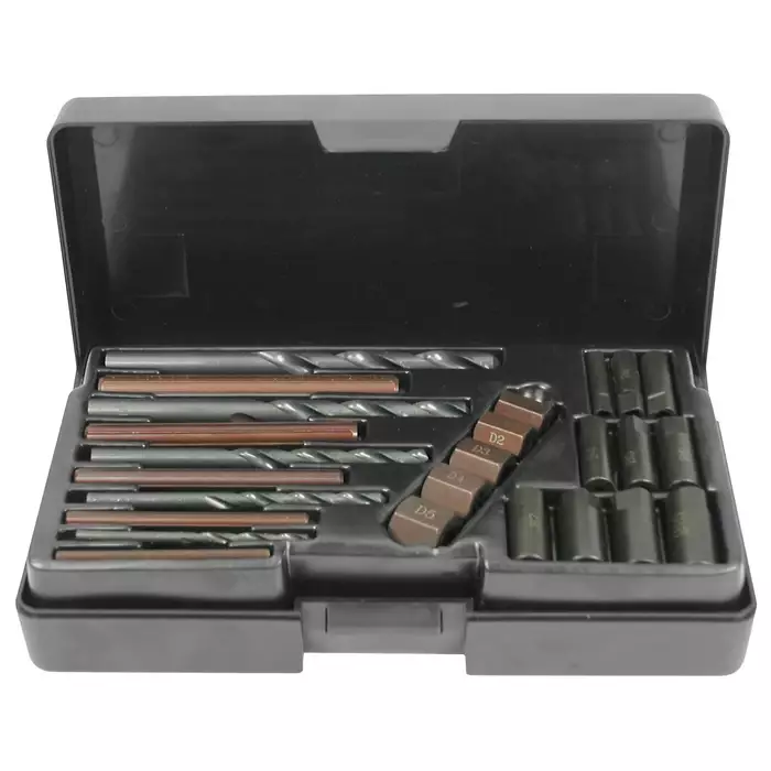 Sisältö: - HSS-porat 5 kpl: 3,2 - 4,8 - 6,4 - 8 - 8,7 mm - ohjainholkit 10 kpl: B1 - B2 - B3 - B4 - B5 - B6 - B7 - B8 - B9 - B10 - vääntötapit 5 kpl: C1 - C2 - C3 - C4 - C5 - vääntömutterit 5... Lue lisää