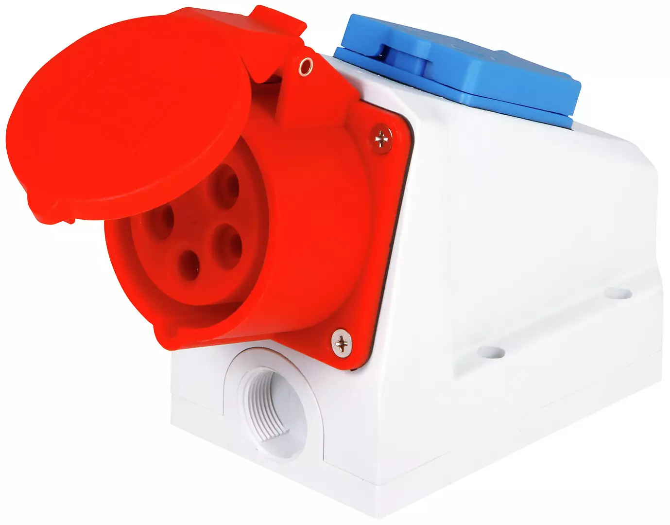 400 V / 16 A - pistorasiat suojakansilla - varustettu 16 A 230 V Schuko pistorasialla - pakattu yksittäin kutistemuoviin jossa EAN-tarra