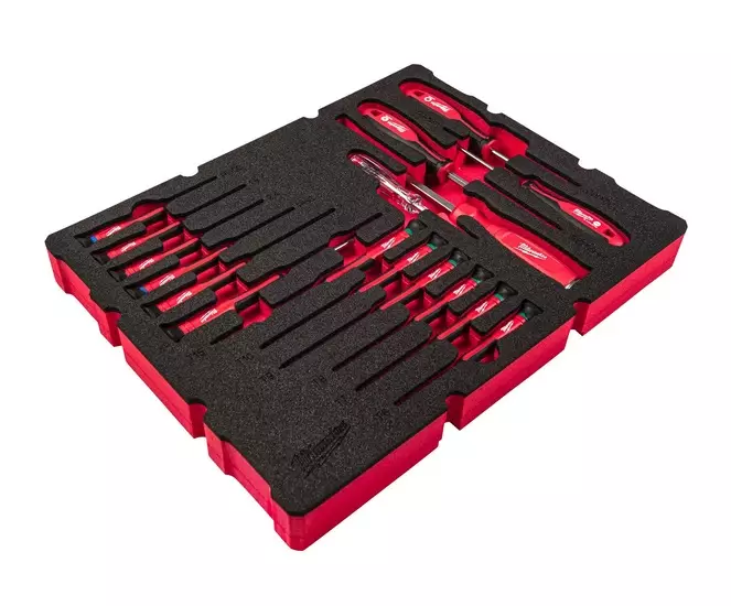 Milwaukee 17-osainen Tarkkuusruuvimeisselisarja vaahtomuovialustalla vetolaatikollisiin PACKOUT-työkalupakkeihin