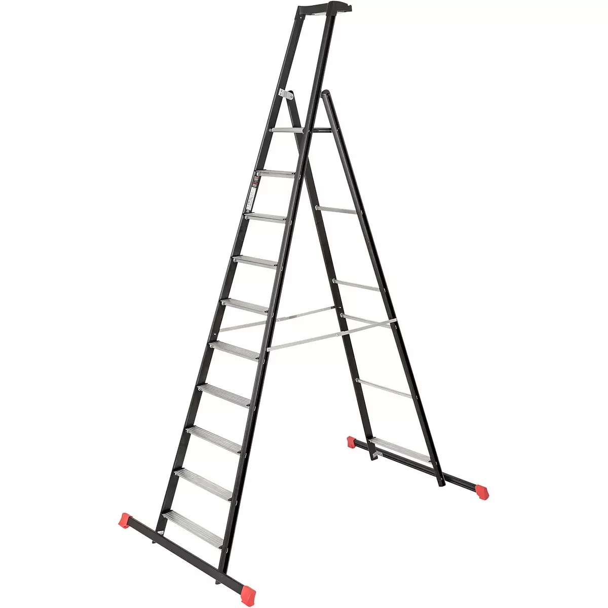 Tikli ammattitasotikas ATJ10, 10-askelmainen - Kestävä, kotimainen ammattikäyttäjän A-tikas - Sivuprofiileiden ergonominen muotoilu yhdessä mustan struktuurimaalipinnan kanssa tekee tikkaan... Lue lisää