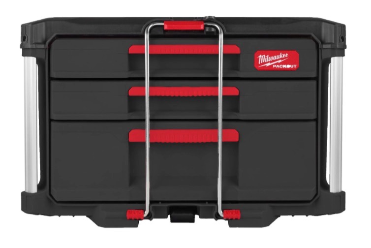 Vetolaatikollinen PACKOUT™-työkalupakki mahdollistaa helpon pääsyn työkaluihin jopa silloin, kun se on asetettu PACKOUT™-pinon alimmaiseksi