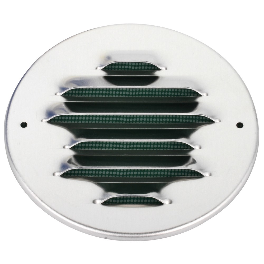säleikkö alumiinilevystä - varustettu hyttysverkolla - kiinnitys laipan läpi - nim Ø 100 mm - aukko 100 mm - max. Ø 142 mm - väri/käsittely sinkitty - paino 220 g