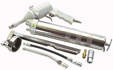 sarja sisältää: - paineilmakäyttöinen rasvaprässi - käsikäyttöinen rasvaprässi - taipuisa letku - kiinteä putki - 1/4 liitin - ilmaletkun liitin