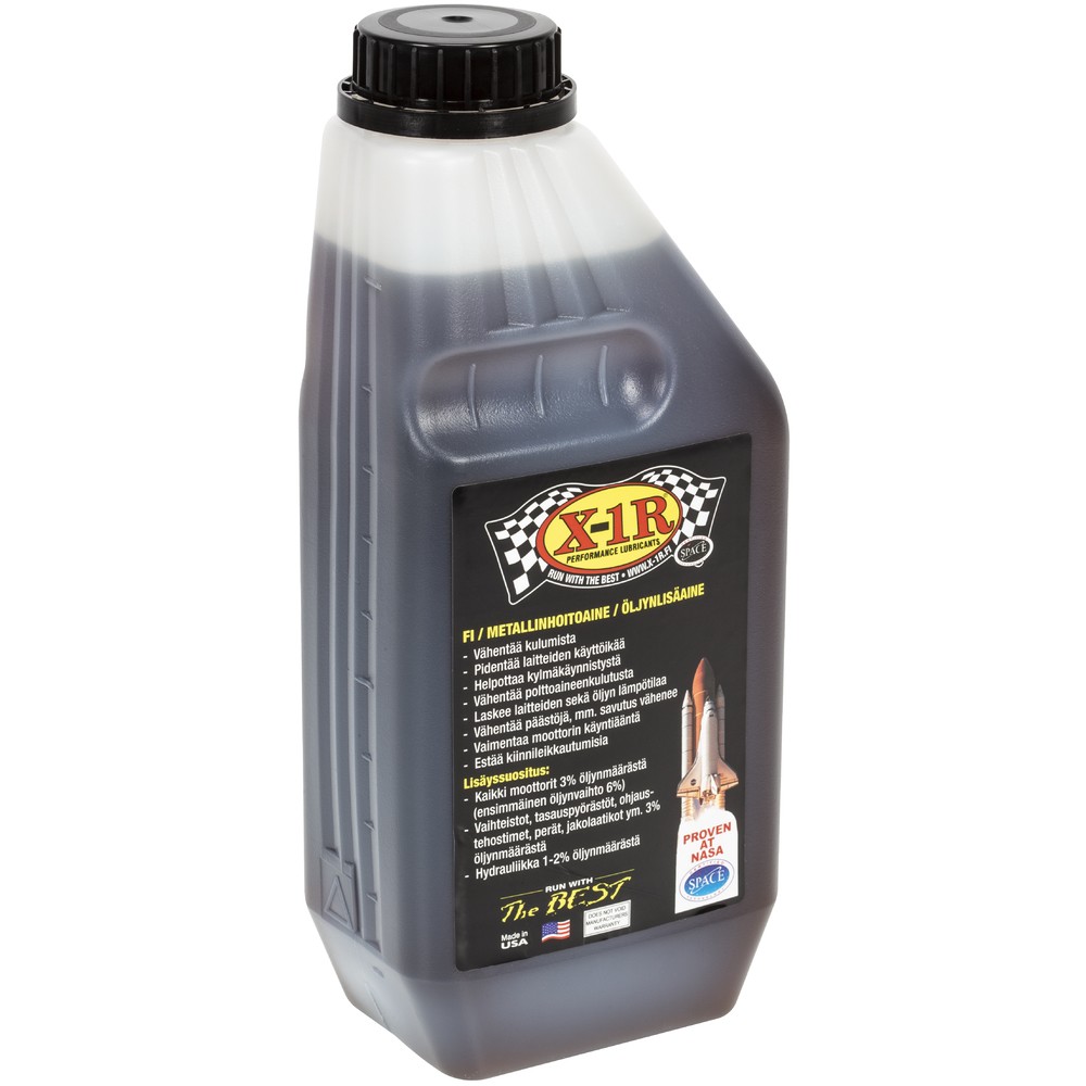 - X-1R metallinhoitoaine sopii käytettäväksi kaikkien tunnettujen teknisten öljyjen kanssa ja ei vaikuta öljyn viskositeettiin eikä sisällä liuottimia tai kiinteitä hiukkasia