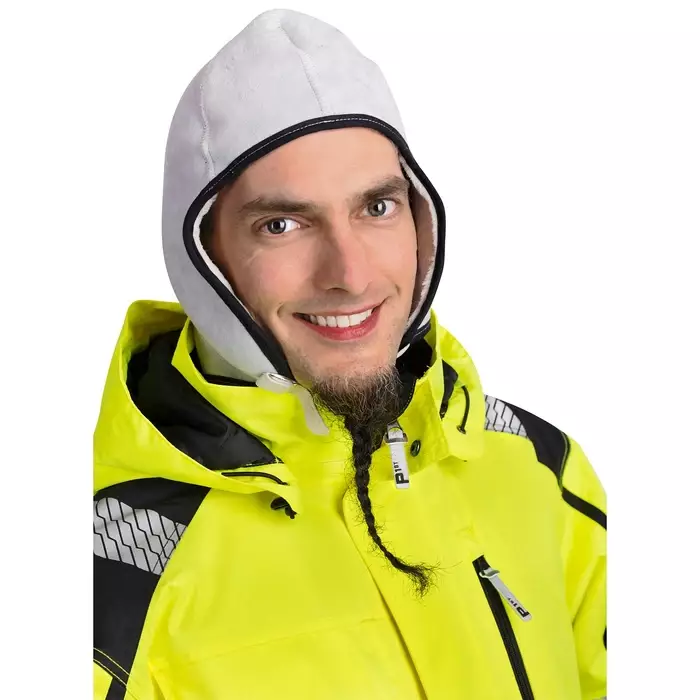 kypäränalushuppu - materiaalina aito lammasturkis - leukaremmikiinnitys