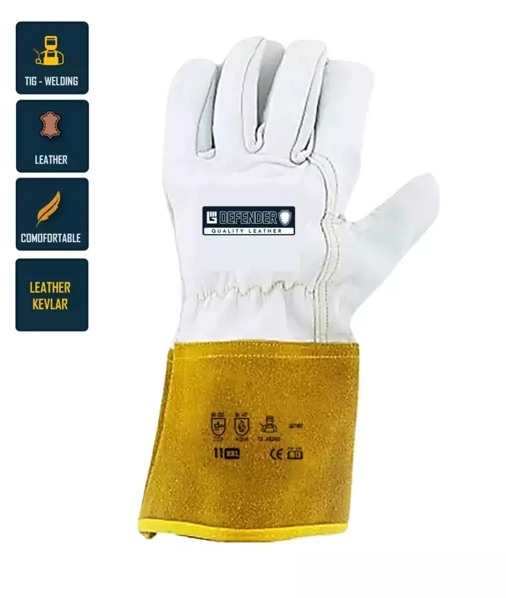 Laatuhanska Defender on Tig hitsaus hanska. Se valmistettu vuohen nahasta, joka on yksi markkinoiden pehmeimmistä ja vahvimmista nahoista. Nahka hengittää ja suojaa myös lämmöltä. Sopii hyvin työtehtäviin, joissa on suojauduttava kuumilta pinnoilta. Kevlar lanka.
