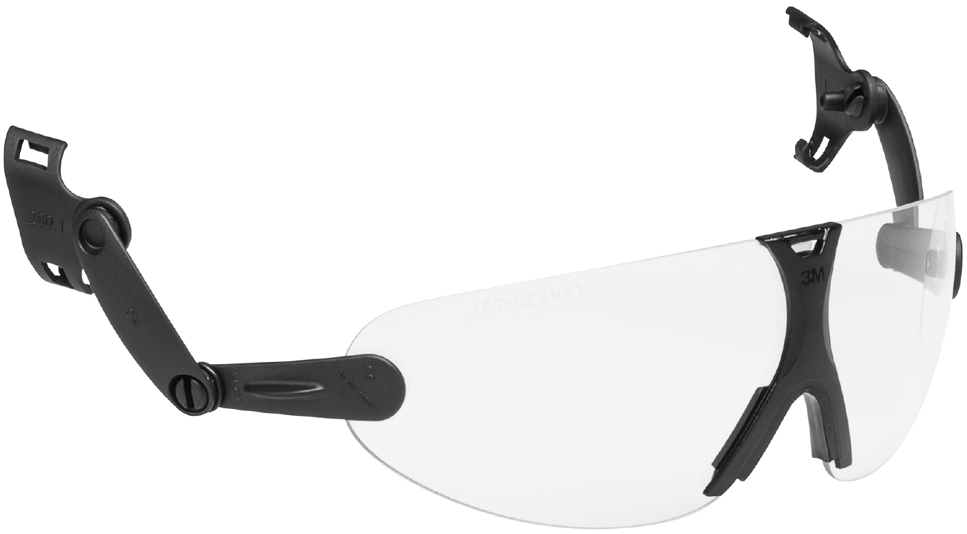 Kypärään yhdistettävät 3M-suojalasit ovat käytettävissä aina tarvittaessa. Ne on helppo työntää kypärän kuoreen, kun niitä ei tarvita, ja säädettävä korkeus- ja syvyysasento takaa hyvän istuvuuden. Suojalasit on helppo asentaa kaikkien 3M-turvakypärien ja G500 Multisystem -kokoonpanojen pääpantaan Linssivaihtoehdot kirkas, harmaa ja keltainen. Uusi V9-malli on entistäkin parempi: vahvemmat nivelvarret pitävät lasit hyvin paikallaan, ja muotoilun ansiosta lasit ovat paremmin suojassa naarmuuntumiselta käyttökertojen välillä.