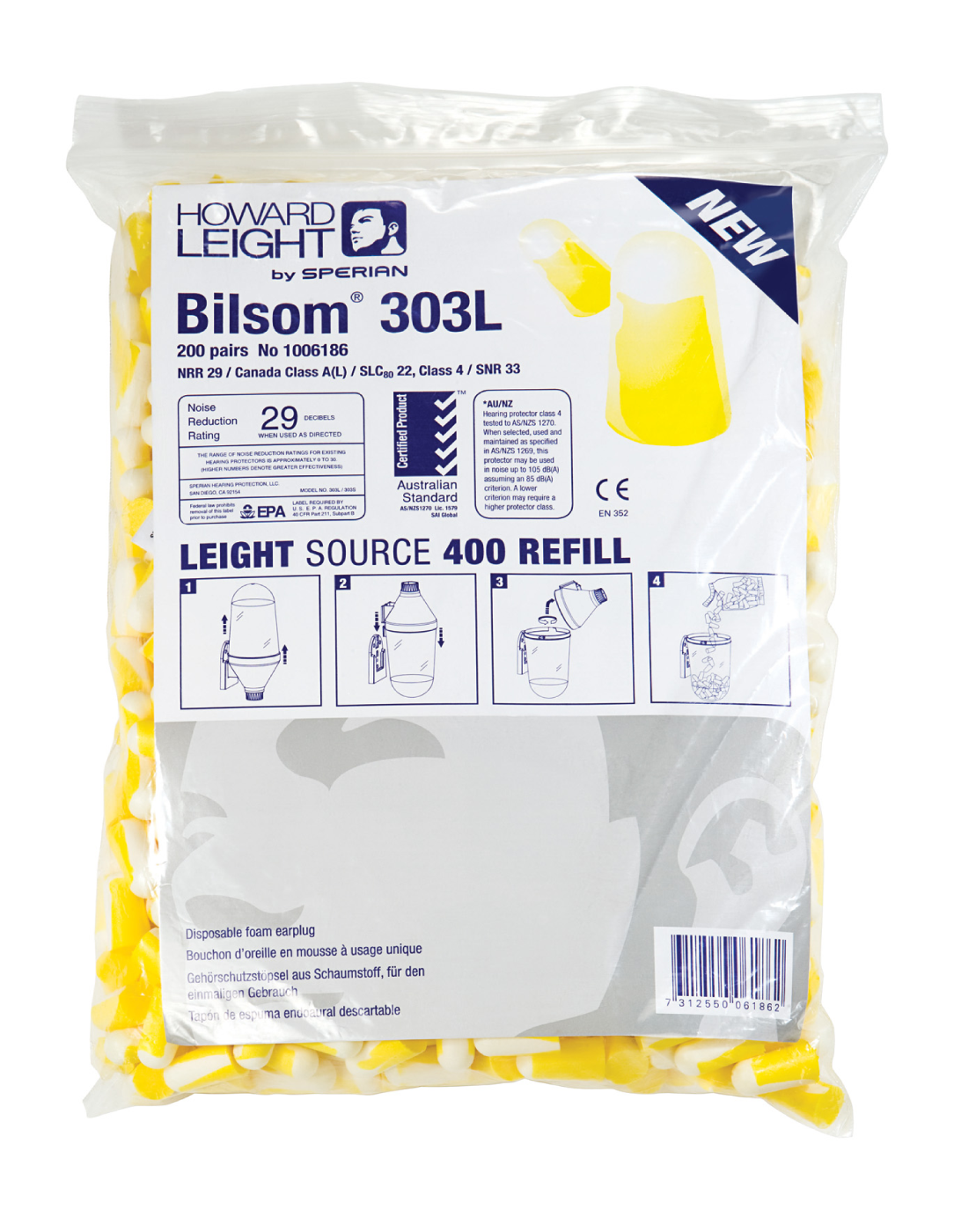 Vaahtomuovitulppa täyttö Howard Leight Bilsomat 303